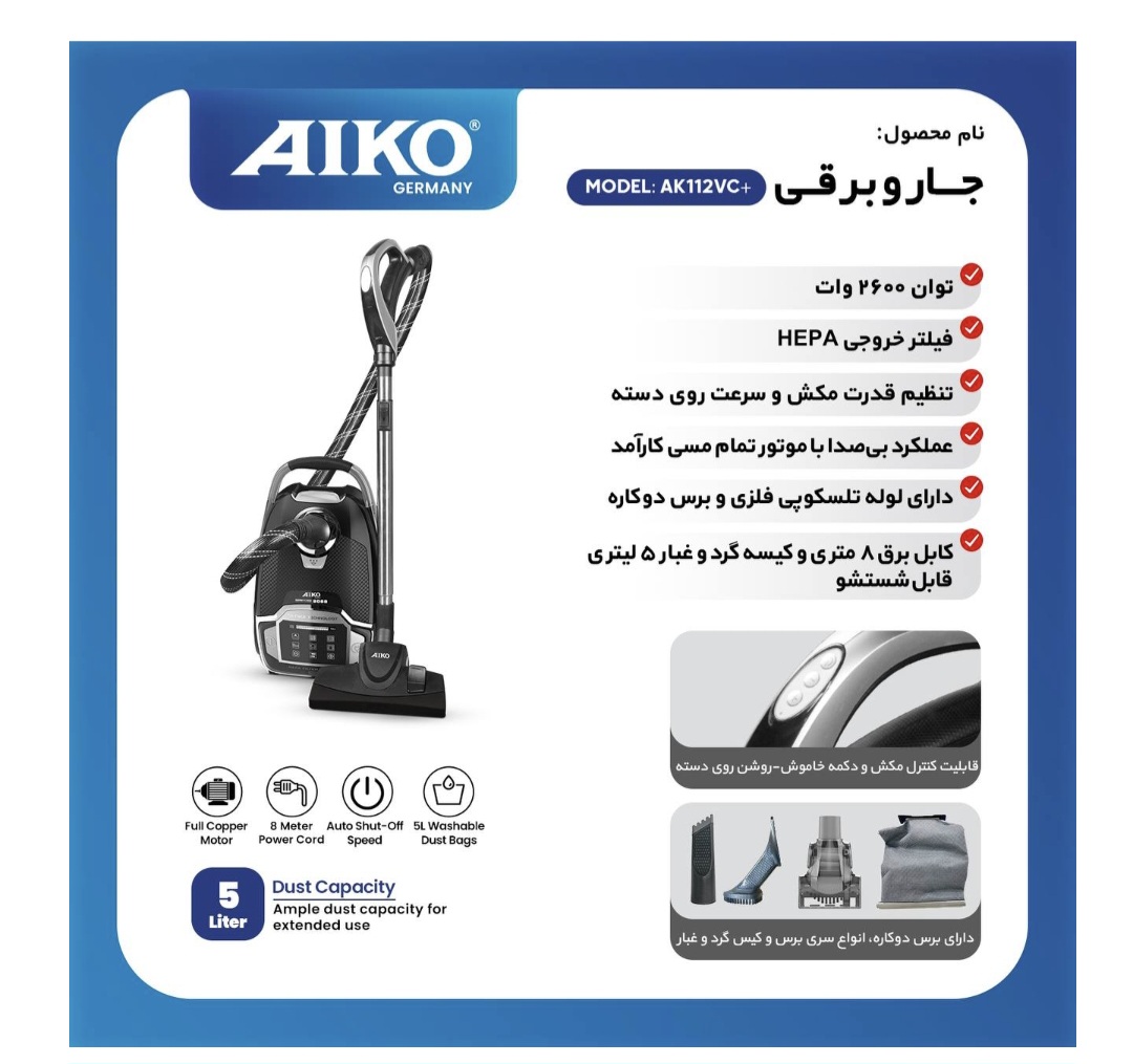 قدرت موتور۲۶۰۰ واتنوع موتورکمپرسطول کابل برق۸ مترجنس موتورموتور تمام مسجنس لولهکنفی با قابلیت انعطاف بالاقابلیت چرخش ۳۶۰داردکشور سازندهتحت لیسانس آلمانمیزان صداسوپر سایلنتوزن۳ کیلو